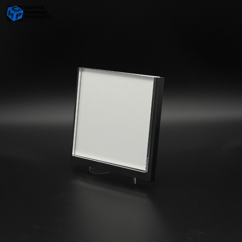 - Materials: Beveled Acrylic "Holder" with a clear Acrylic "Drop-in" Insert